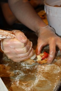 There is something about the call of battle that is so invigorating. At least, that’s what every science fiction novel has lead me to believe. Now I am more informed. War isn’t pretty. Not even a war covered in chocolate. I attended the Hobart Dessert Wars held at the Amway Grand Plaza Friday night. I was late to the event and my poor planning landed me in the fudge sauce right away. I had no idea how well attended the event would be. Too well attended. The line to get into the Ambassador Ballroom took at least twenty minutes—snaking in and around the foyer, through a back hall, around a bathroom (presumably to give you an opportunity before continuing the trek) and back around to the foyer again. By the time I got inside it was wall to wall with chocolate crazed donut lovers.