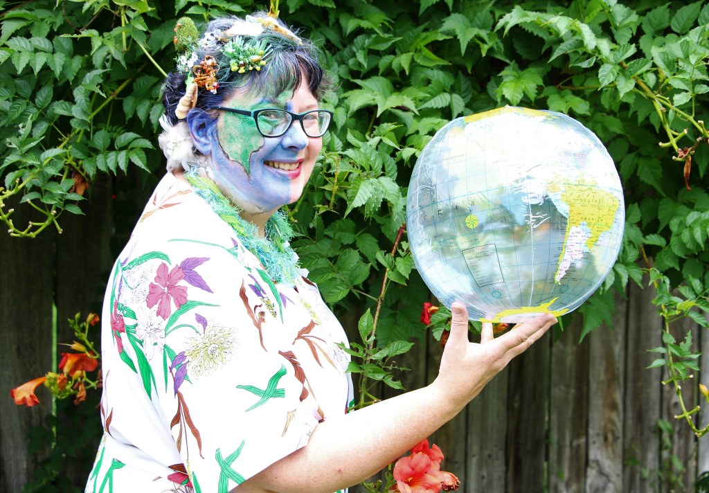By the way, it took several washes to get the white grease paint out of my hair–and you can’t even see the polar ice caps melting on top of my head! Boo!