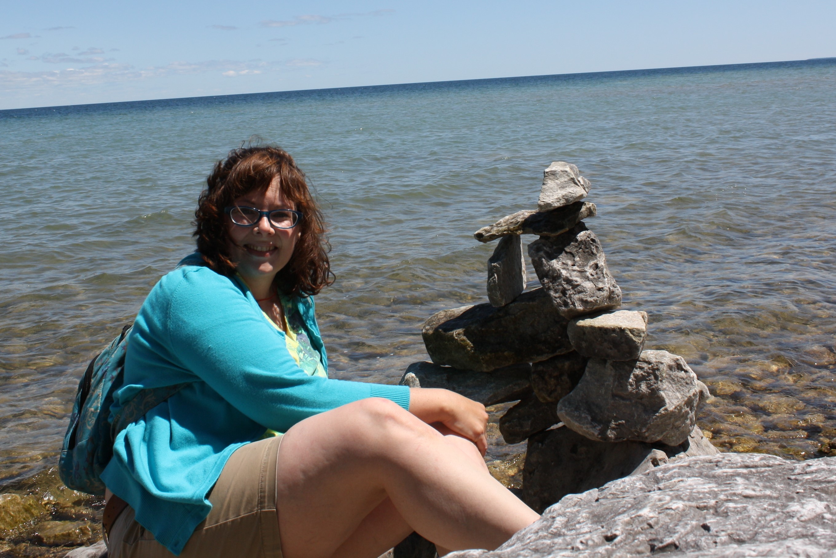 I meander my way past a makeshift driftwood chair and table hosting a solitary cairn.